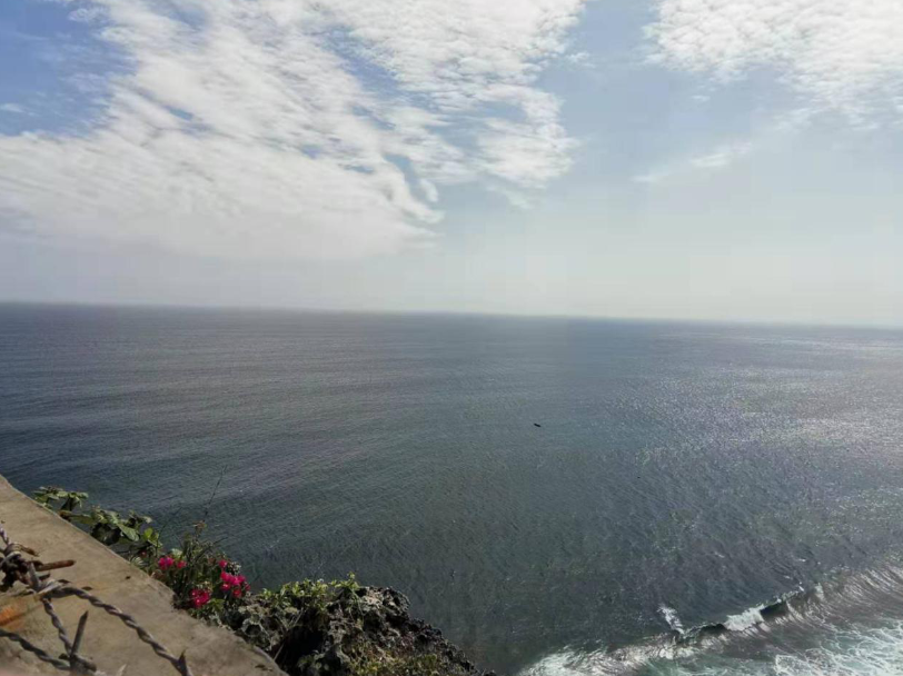 午餐后,去了烏魯瓦圖斷崖(情人崖)。這里海浪拍打著懸崖,海鳥在空中翱翔,景色非常迷人。與海神廟岸邊公園相似,情人崖上也遍布各種帶有宗教色彩和巴厘島特色的石雕,這些雕塑造型圓潤,線條卻無比繁復(fù),足可見出工匠的巧手妙思。更有熱帶風情的是,不少神像的耳邊還插著一朵當?shù)刈疃嘁姷哪厅S色雞蛋花,巴厘人的細膩多情可見一斑。在情人崖有許多猴子,特別猖獗,會搶東西,除非用吃的或錢引誘,要不沒法取回。