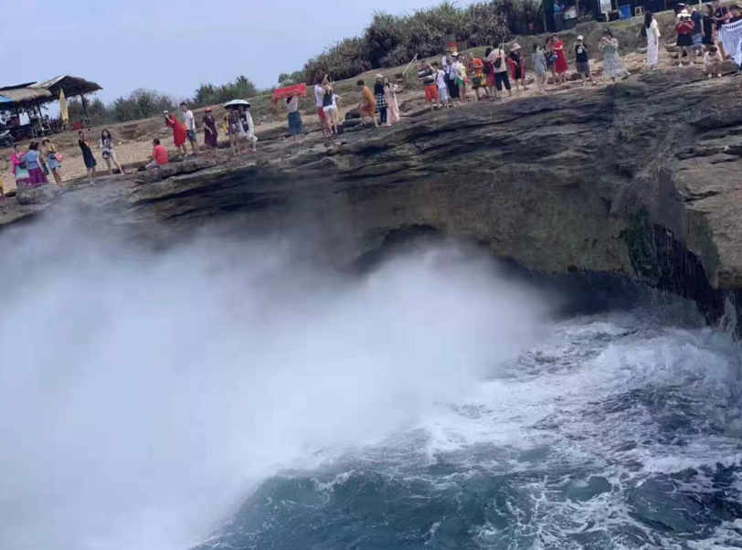惡魔的眼淚是一個小的懸崖,但因為常年的海水沖刷,形成了一個開口圓形的形狀。懸崖底端也有被海水沖刷出的洞穴,因為壓強的擠壓,漲潮的時候海浪在這里被沖出幾十米高。我們運氣很好看到在陽光折射下水霧中的彩虹,而且還拍了不少美麗的照片。