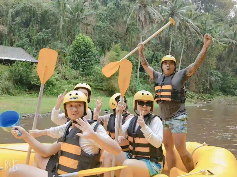 據(jù)說巴厘島自費水上活動首推的是著名漂流阿勇河,阿勇河長11公里,流經(jīng)上有22處急流點,兩岸均是原始森林的變換景象。水比較小,刺激程度一般,但可以欣賞到絕佳的熱帶雨林風景和瀑布。我們的小伙伴這水仗打的那時相當過癮~~