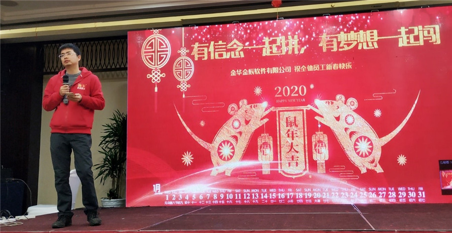 李家駒李總說公司從創(chuàng)業(yè)之初的艱辛痛楚,到今天的良性增長,從最初的無人可用,到現在的人才濟濟,金華金辰走過了16年,迎來了第17個年頭;我們從默默無聞到聲名鵲起,離不開每一位金辰家人的辛勤付出,在這里非常感謝各位家人,也堅信在2020年你們會更加出色更加優(yōu)秀。