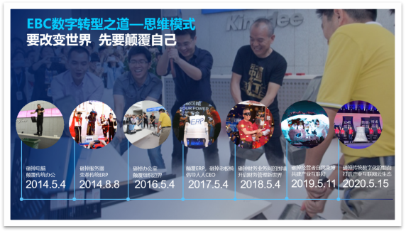 活動(dòng)一開(kāi)始,由金華金辰軟件有限公司副總經(jīng)理倪小紅女士開(kāi)場(chǎng)致辭。倪總通過(guò)一張圖展示了金蝶從14年開(kāi)始的轉(zhuǎn)型史,講述了金蝶公司從總裁開(kāi)始自上而下的顛覆決心。